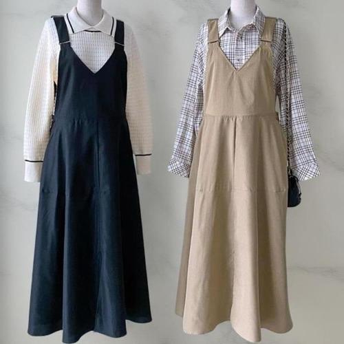[다잇템][다잇템] 여성 스트랩 V넥 미니멀리즘 롱 후레아 서스펜더 드레스_21994678_588872