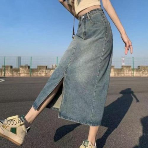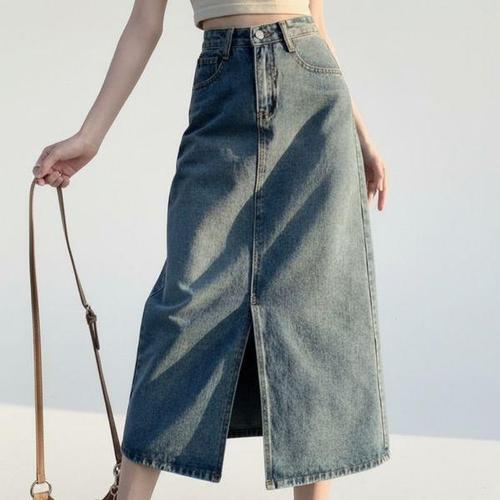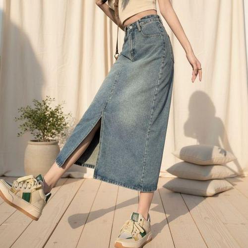 [신상오픈런]여성용 트임 롱 데님 스커트 3가지 색상 치마