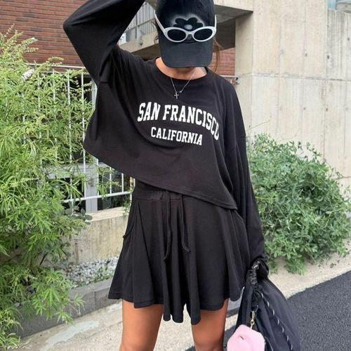 [다잇템]여자 롱슬리브티 탱크 박시핏 큐롯팬츠 세트
