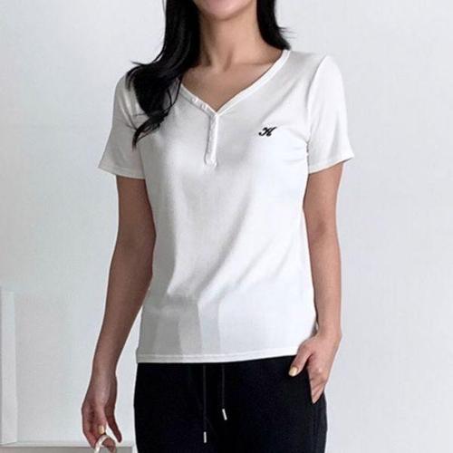 여성 빅사이즈 하프브이넥롱반팔티 ILC834M305