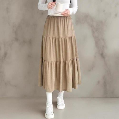 [옷자락] 여성 스트리트 패션 단색 캉캉 밴딩 롱 스커트