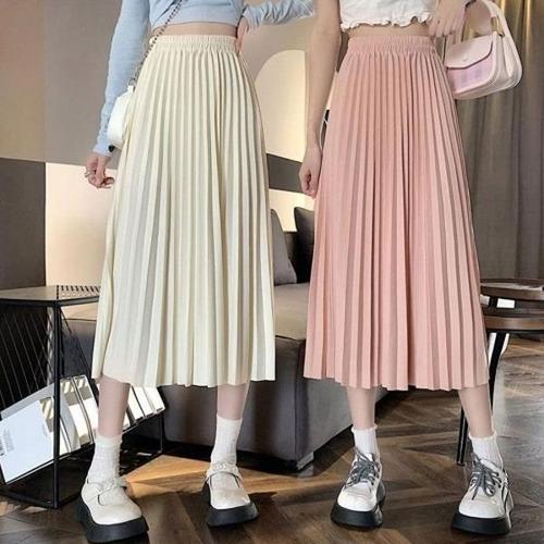 [잘빠진] ★2종세트★ A라인 밴딩 플리츠 스커트 빅사이즈 롱 쉬폰 스커트 주름치마 22-004