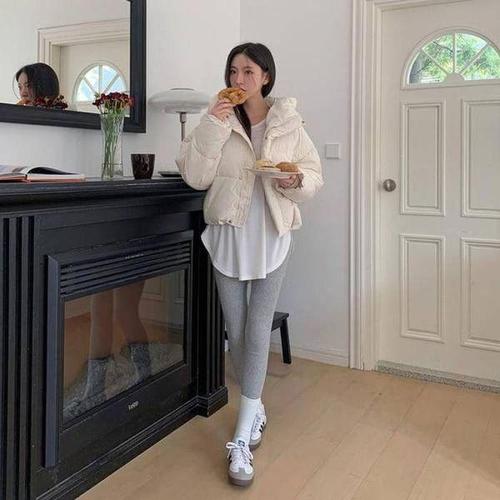 샤이닝포인츠 여성 루즈핏 숏 하이넥 오리털 패딩
