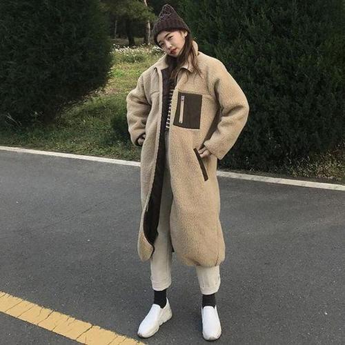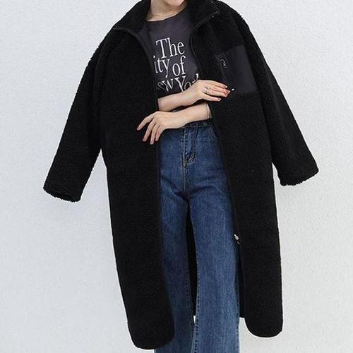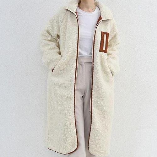 [에이치플러스몰]양털 롱자켓 후리스 뽀글이 점퍼 롱코트 캐주얼룩