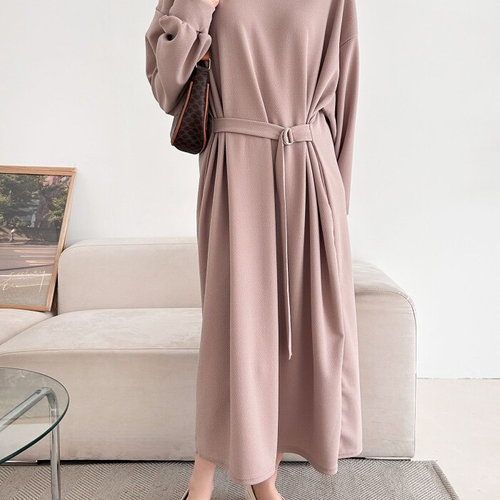 [옷자락] 여성 라운드넥 루즈 허리밴딩 긴팔 롱원피스
