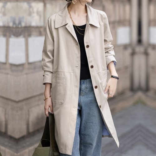 메일리 홑겹 바스락 봄 가을 오버핏 여성 여자 후드 바람막이 사파리 롱 야상 점퍼 자켓