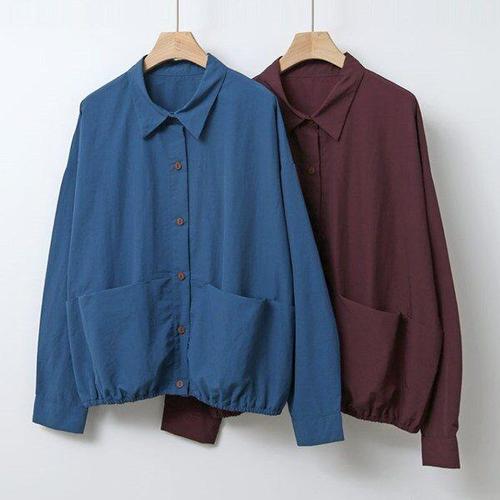 [다잇템]여성 잔주름 롱슬리브 바람막이 핀턱 셔츠