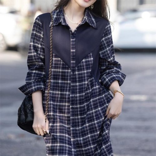 [크로커다일레이디]크로커다일레이디 체크 버튼업 7부 롱 셔츠원피스_CLEMOP109
