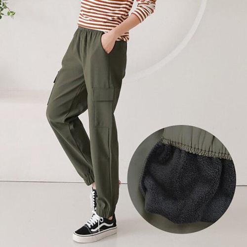 [굿쇼핑몰_의류]여성 양털 2컬러 포켓 기모 카고 조거 롱 팬츠