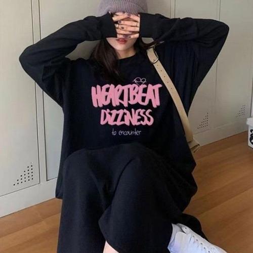 오버핏 레터링 프린팅 박시 롱 맨투맨 원피스 WFKN9NA