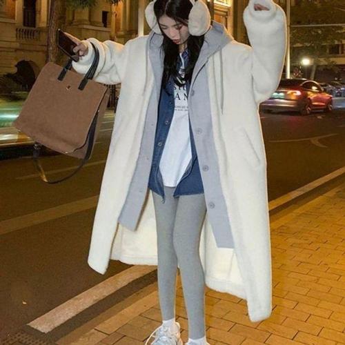 여성 뽀글이 후리스 후드 블랙 롱 코트 겨울 아우터 양털 여성롱 뽀글이롱 양털롱 스코트