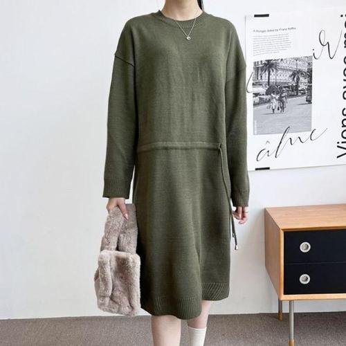 [에이치플러스몰]루즈 여성 니트 원피스 여자 스트링 롱 원피스 치마