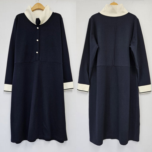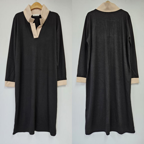 나야홍 / 빅사이즈루즈원피스 S702L502 펄단주카라배색원피스 B