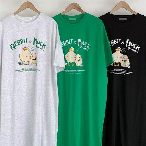 S27156 루즈가슴영문 라운드 반팔TIT 반팔 롱티 여성 원피스