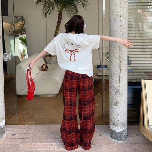 [에이치플러스몰]리본티셔츠 두꺼운 프린팅 롱 리본 오버핏티셔츠