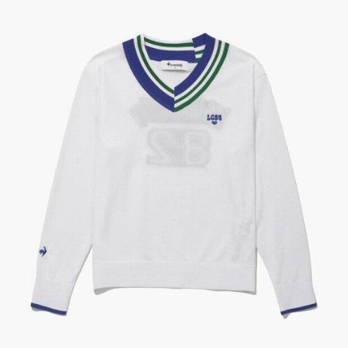 [르꼬끄골프]르꼬끄골프티셔츠 KQF GQ222LKP41-WHTE 여성 V넥 배색 포인트 스웨터 / white