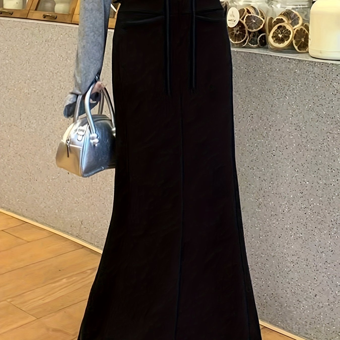 TEMU 2025 가을 겨울 신상 골든 벨벳 드레스 롱 스커트 블랙 스커트 여성 봄가을 스커트