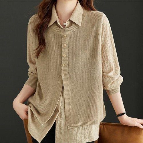 TEMU 여성용 우아한 캐주얼 블라우스 - 라운드넥 루즈핏 셔츠 탑, 비침 없는 사무실 및 일상용 중립색 상의 - 사계절 필수 아이템, 리브 디테일, 중간 신축성, 비투명 소재