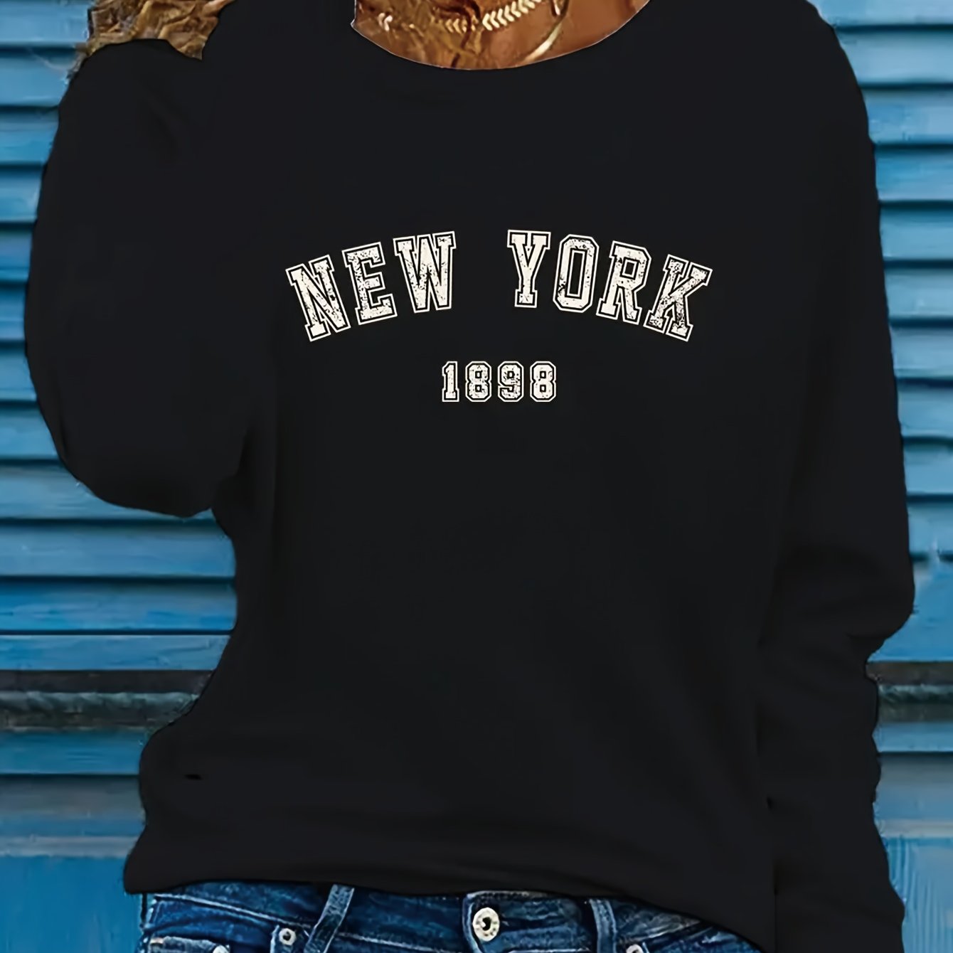 TEMU 여성용 뉴욕 프린트 라운드넥 블라우스 - 캐주얼 롱슬리브, 오피스, 여행, 캐주얼 복장에 적합 - 세탁기 사용 가능 - 라인 블라우스