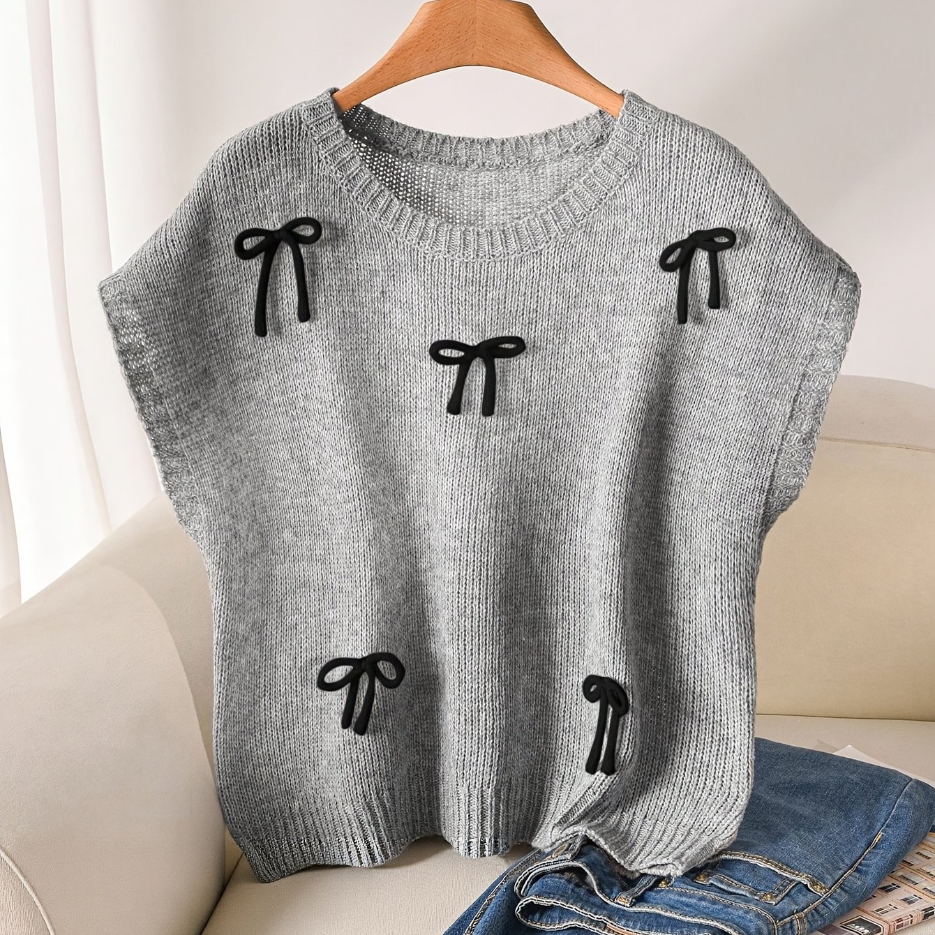 TEMU 플러스 사이즈, 여성용 플러스 사이즈 우아한 리본 장식 반팔 블라우스 - 플러스 사이즈 라운드넥 봄 여름 반팔, 솔리드 컬러 캐주얼 & 세미 포멀 웨어, 세탁기 사용 가능, 편안한 캐주얼에서 오피스까지 여성용 블라우스