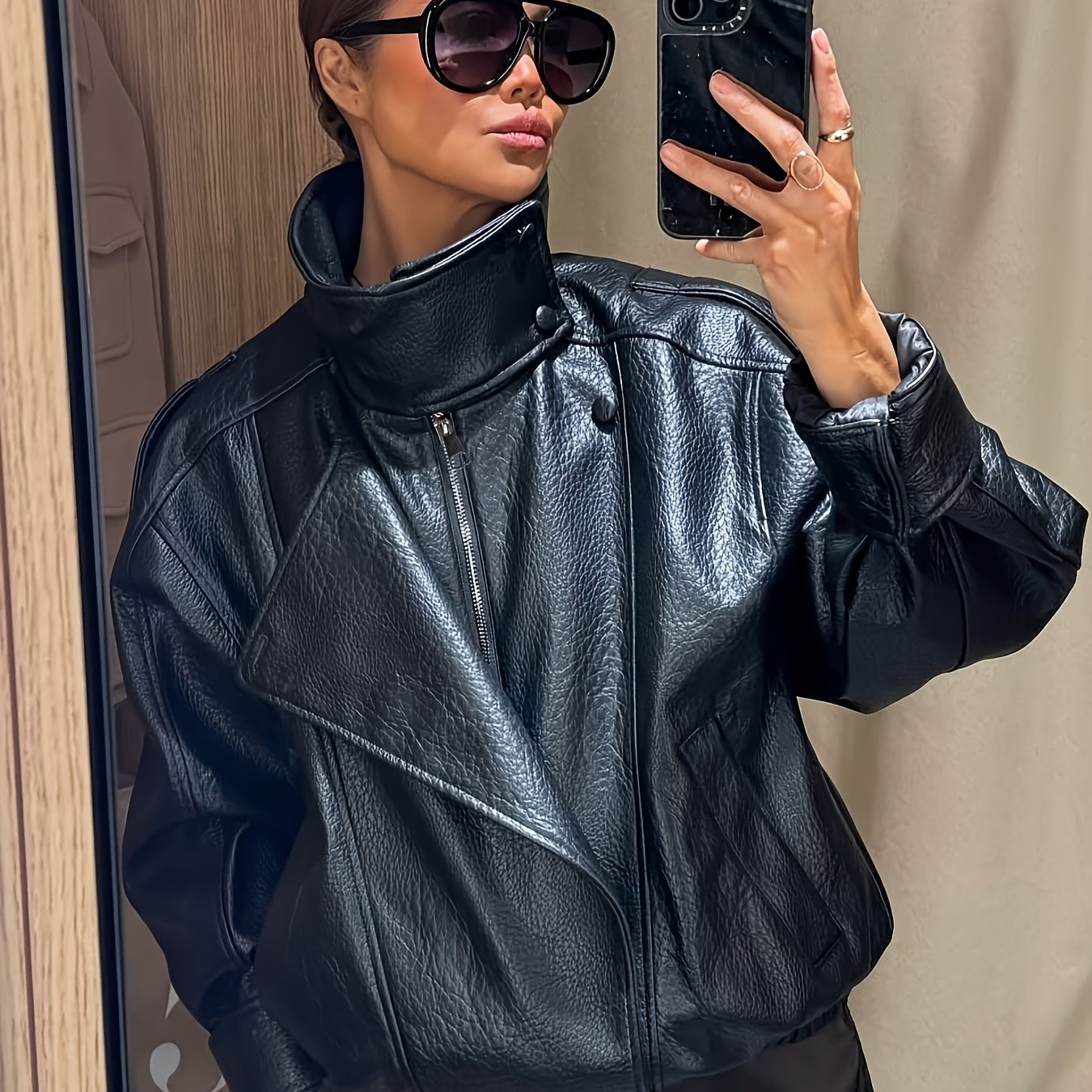 TEMU 여성용 엘레강스 PU 자켓, 봄/가을 패셔너블하고 활용도 높은 블랙 PU 자켓, 새로운 스타일