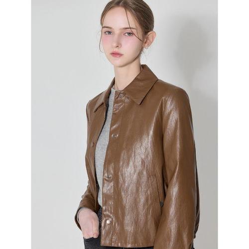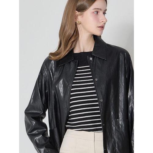 [르오트]모노톤 베이직 FAUX 레더 셔츠형 자켓