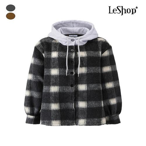 [르샵]배색 후드 체크 버튼 모직 셔츠형 점퍼 BPCJP007A