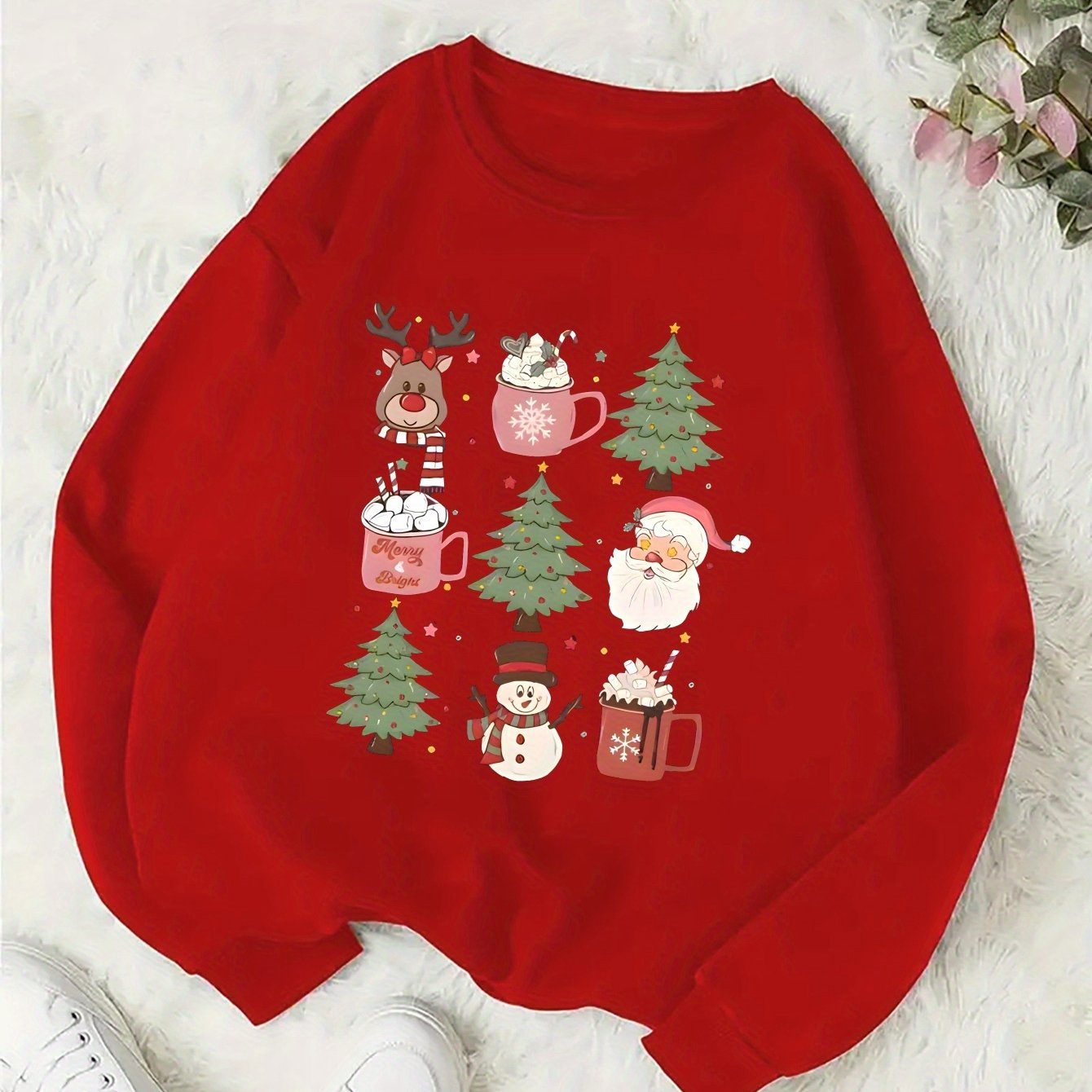 TEMU 여아용 2024 5 30 패턴 스웨트셔츠 - 산타, 말벌 & 컵케이크 디자인의 포근한 라운드넥 풀오버, 가볍고 부드러운 신축성 있는 원단, 캐주얼한 봄/가을 의류, 귀여운 스웨트셔츠