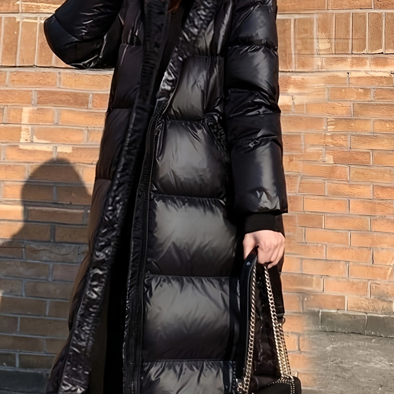 TEMU 여성용 새로운 두꺼운 긴 겨울 후드 코트, 슬림핏, 무릎 길이의 겉옷.
