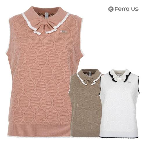 (WFH1EB3) TC 페라어스 여성 리본카라 니트 골프 방풍조끼