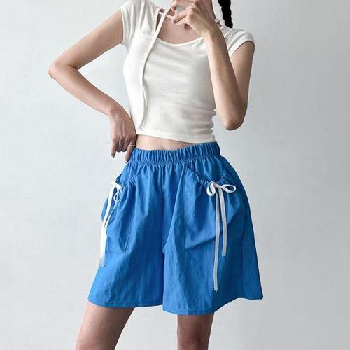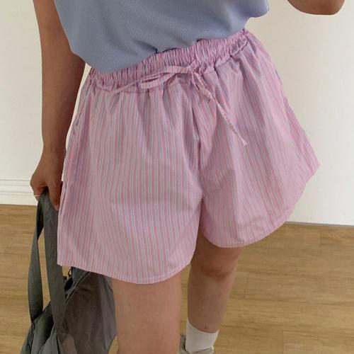 [샵앤][샵앤] 여성 리본 슈가핀턱 루즈핏 여름 밴딩 반바지 PIC-WPT-20743-소라