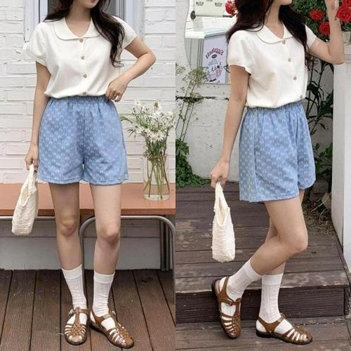 [신상오픈런]|KHP8BD4|여성 귀여운 리본 디자인 면 데님 밴딩 반바지_21887132_597559