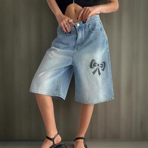 [디자이너몰]여성 썸머 리본 패턴 밴딩 데님 반바지