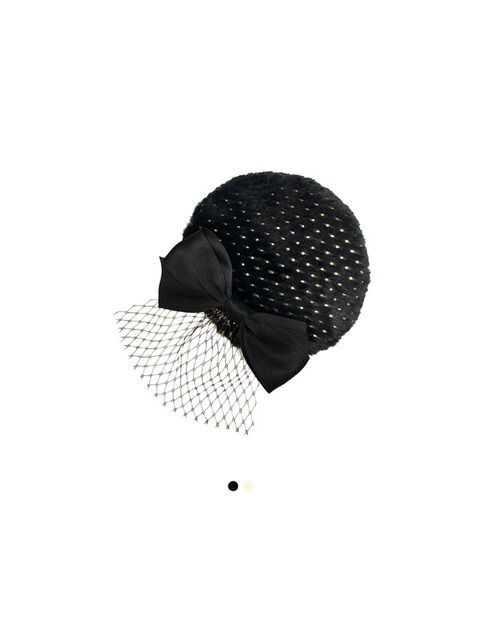 [키앙] 올리비아 퍼 리본 페이스베일(White/Black)