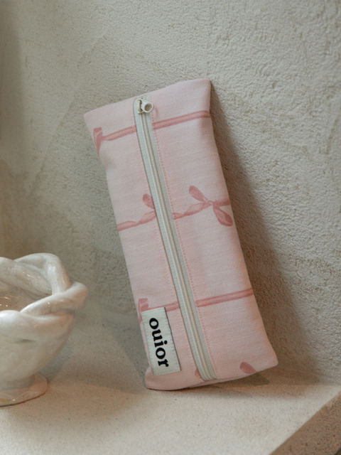 [위올] 위올 플랫 펜슬케이스- 리본 핑크(중간지퍼)