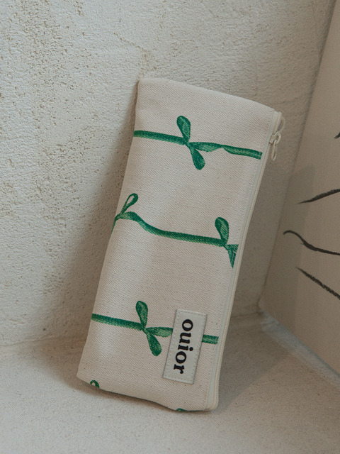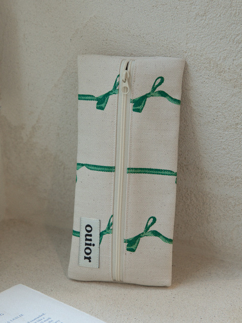 [위올] 위올 플랫 펜슬 케이스 - 리본 그린(중간지퍼)