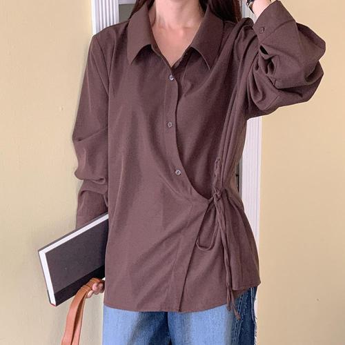 옷자락 / 여자 오버핏 랩남방 언발 가을출근룩 리본 박시 셔츠