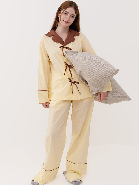 [슬립슬랩] 러블리 리본 면 파자마 세트 (60수)_옐로우