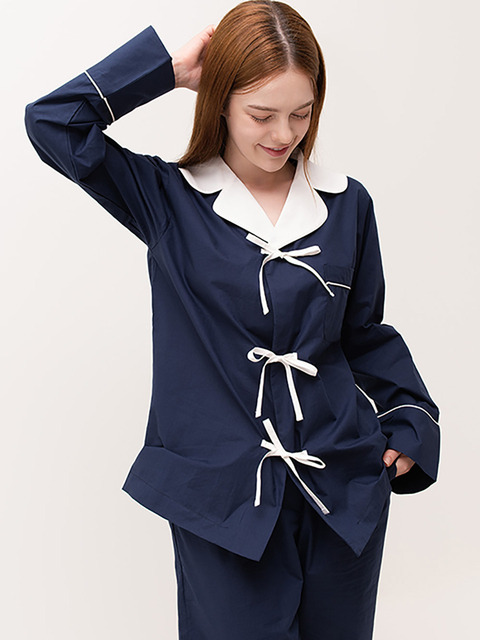 [슬립슬랩] 러블리 리본 면 파자마 세트 (60수)_네이비
