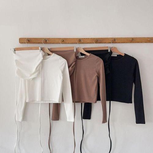 [옷자락]여성 레이어드 셔링 리본탑 긴팔 투피스 세트
