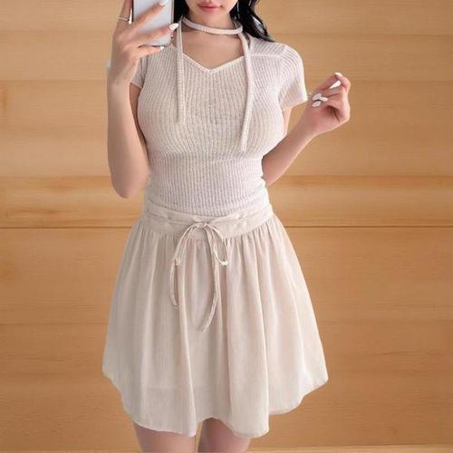 [다잇템]여성 코르셋 박스 리본 코디 드레스 세트
