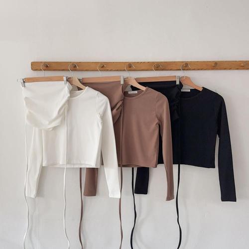 [옷자락] 여성 레이어드 셔링 리본탑 긴팔 투피스 세트
