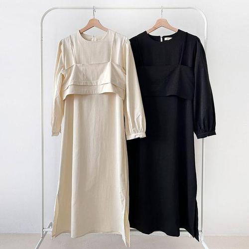 여성 홈웨어 리본 트임 원피스 슬립 잠옷