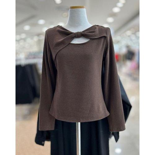 봄가을 이너 여성복 중년 엄마 긴팔티 상의 루즈핏 빅사이즈 예쁜 리본 파츠 장식 편안한 트임 세미 티셔츠