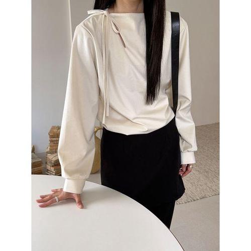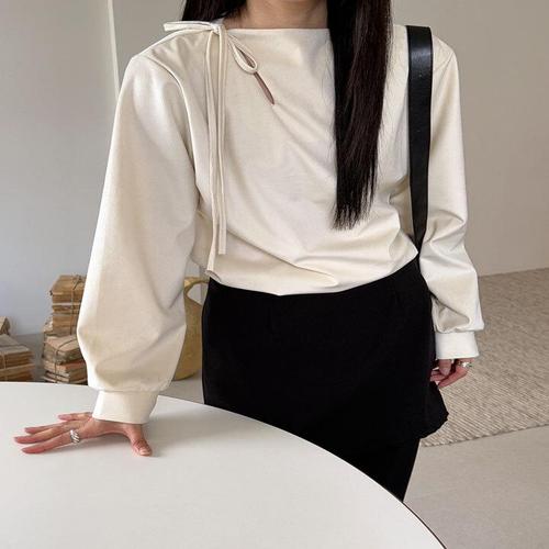 소프트 소재 여성 블라우스 심플 리본 긴팔 오피스룩