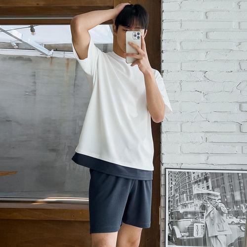 [리빌모아]여름 남자 버뮤다 핀턱 밴딩 데님 반바지 DJ-JEH-SHSSM5102