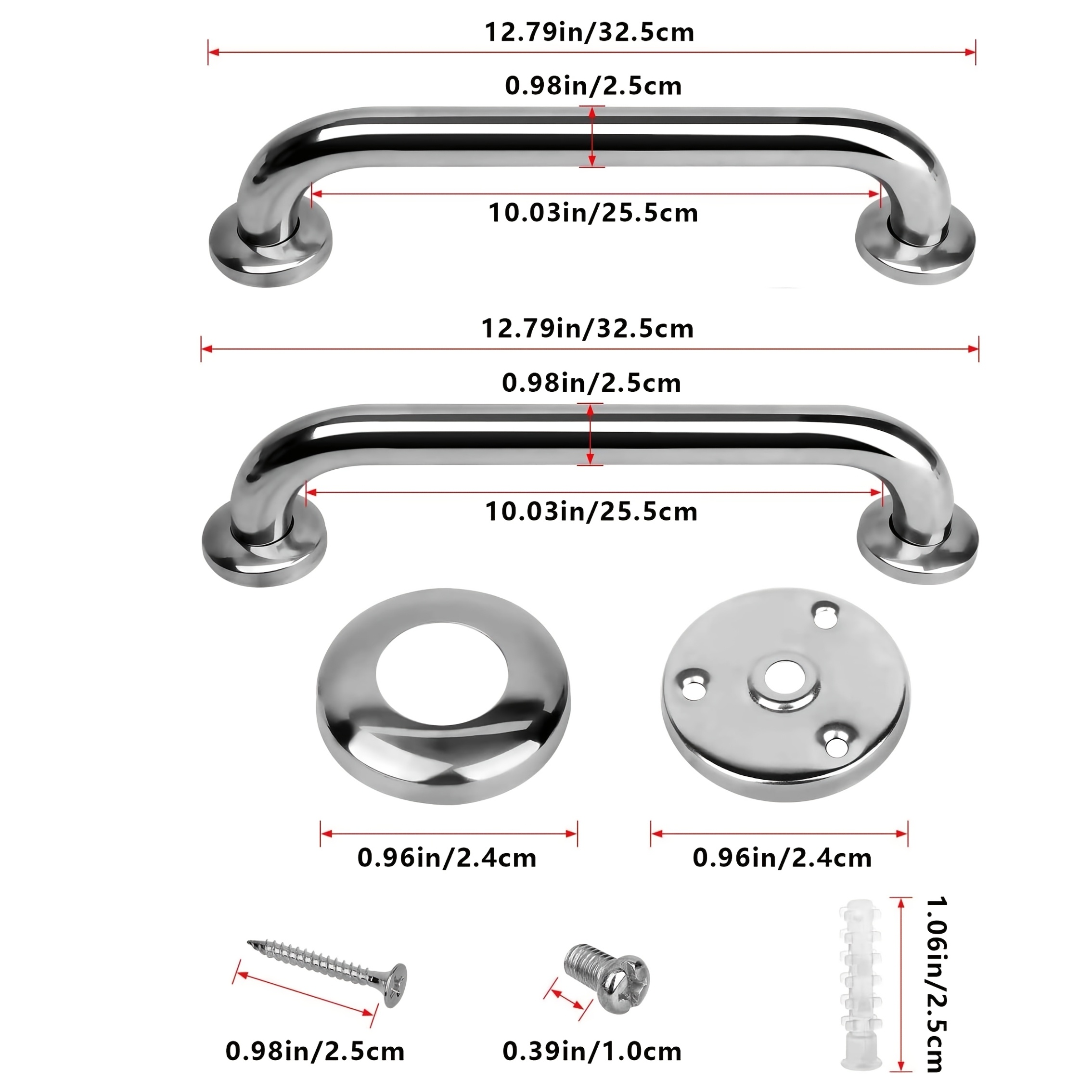 TEMU 욕조 및 샤워기 손잡이 난간 2개, 안전 욕실 샤워용 손잡이 난간, 최대 500파운드(약 226.8kg) 하중 지지, 장애인용 손잡이 난간, 벽에 부착 가능한 미끄럼 방지 샤워용 손잡이
