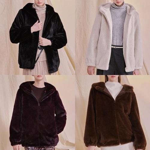 [엘루아] VEGAN FAUX 밍크 후드 하프코트 5종택1