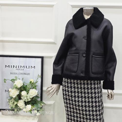 [나인식스뉴욕]양털 배색 레더 무스탕 코트 (NO4JH016L0)