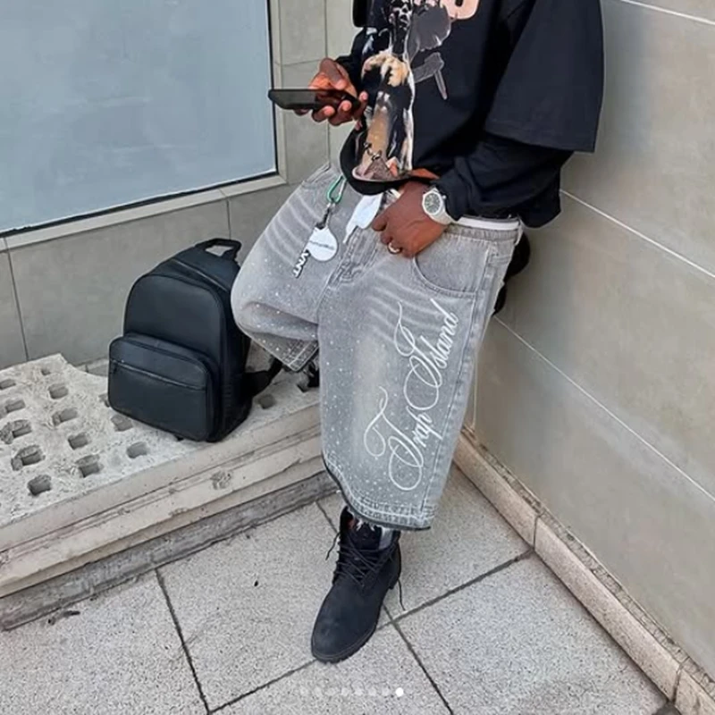 새로운 빅 사이즈 긴 길이 남성 반바지 루즈 스트레치 진 버뮤다 남성 얇은 3/4 카프리 여름 라이트 대형 플러스 지방 데님 바지